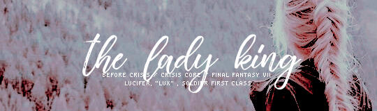 laura bailey / rise kujikawa ( teen ), laura bailey / saints row the third ( adult ), kari wahlgren / aranea highwind ( alt. adult ), miyuki sawashiro / aranea highwind ( japanese ).weapon: claymore ( skofnung ). its hilt is wrapped with dark blue fabric that is worn with age. a secondary weapon, a delicately crafted silver rapier with a golden hilt named heaven piercer, is constantly strapped to her waist.historia.this bio has mentions of abuse of the physical and psychological sort as well as experimentation, sterilization, & decapitation.originally from costa del sol, reginleif and her family make the move to midgar in an attempt to expand upon her father’s fishing trade. however, somewhere along the way, she and her family are involved in a terrible accident and are happened upon by a group of shinra infantry accompanied by a member of the turks, reno ( @/securityrisk ). the only survivor and with nowhere to go, reginleif is first welcomed into shinra’s care by him. a young lady, barely an adult, with nowhere to go — she shouldn’t have trusted that they’d really take care of her in the end. but, blind to the reality, she allowed her supposed protectors to charm her into applying for the soldier program after learning how worthy she was after they’d sheltered her for a time. it was foolish to think they’d want anything else for her than a fate that would suit their ends. no one would miss her, an orphan, after all.at first, the other candidates are naturally stronger than her, despite hours spent at the docks and at sea nearly every day of her life. much of the beginning, even after her transformation via the mako, is spent with reginleif — now known as lucifer or lux, a name chosen by a scientist when she refused to give her own — overcoming through the use of wits over strength, until hours spent in training grant her the ability to keep up. after all, the alternative is death.the reality of the soldier project is oft shadowed from the public. how could it ever get out with soldiers mysteriously vanishing after attempting to leave the program or simply dying young ? many never even desired to be a part of it, scouted out by turks and taken from their homes. a mere offer at first, should they be seen as worthy. if they accept, that’s half the battle. those that didn’t go willingly were taken by force or coercion, and those that decided they wanted to quit during training were given no choice but to continue. lux had never wanted to be a soldier, so this was an inevitable fate.the tactics employed on those who rejected the soldier program were essentially abuse: starvation, threat of death, torture. it depended on the individual & the offense. if not put through any of those, soldiers were put in solitary confinement until they decided to comply. this was lux’s “ go - to ” before the concept of disobedience had been stripped from her. the sight of reno, to this day, puts her on edge.this resignation to her situation eventually lands her a position as a first class soldier, however, her problems don’t end there. as a “ reward ” for her loyalty to the cause ( not deserting with genesis, angeal, or even sephiroth ), lux is chosen to finally complete the goal of her project — the achievement of immortality & prevention of losing soldiers due to the effects of mako. soldiers that were already made to be virtually indestructible, now they would never die from disease or injuries due to an increased healing factor. they would never age, but they could never have children of their own. they don’t need to eat, they don’t need to sleep — it won’t kill them. the only thing that could would be decapitation. however, just because a soldier can't die from such things, doesn't mean that they can't suffer. should degradation set in, it will persist and the soldier will not die, suffering its effects until they are put down.by the events of ffvii / ffvii r, lux is looking for a way out, but remains obedient to shinra’s directives. one day, she’ll run, & she’ll never look back.under the guise of an ex - soldier, lux can join the party, though she'll be reporting their movements the entire time. if all goes well, she'll betray shinra, however.original canon. a soul that has existed for over four thousand years and a life of flesh that has persevered for twelve hundred of those four thousand years, andromeda has watched empires rise and fall. by the discovery of the new world, she allows herself to fade into the background. she had deemed it to be the time of man now, the gods no longer having a stake in their development. norse tradition and worship faded into antiquity, remaining really only present in the lands of its origin. more.click here for even more verses. some of which are actually outdated ... and need to be removed.